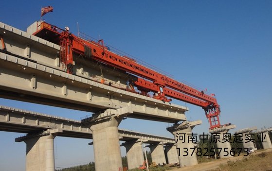 现阶段,架桥机一般是行走式架桥机,即架桥机通过孔,不需要铺设改轨,消除了轨道的材料,降低了工人的劳动强度,另外**个孔需要轮胎梁车梁配合孔,其余的跨桥架桥机可依靠自身的机构实现自平衡过孔。